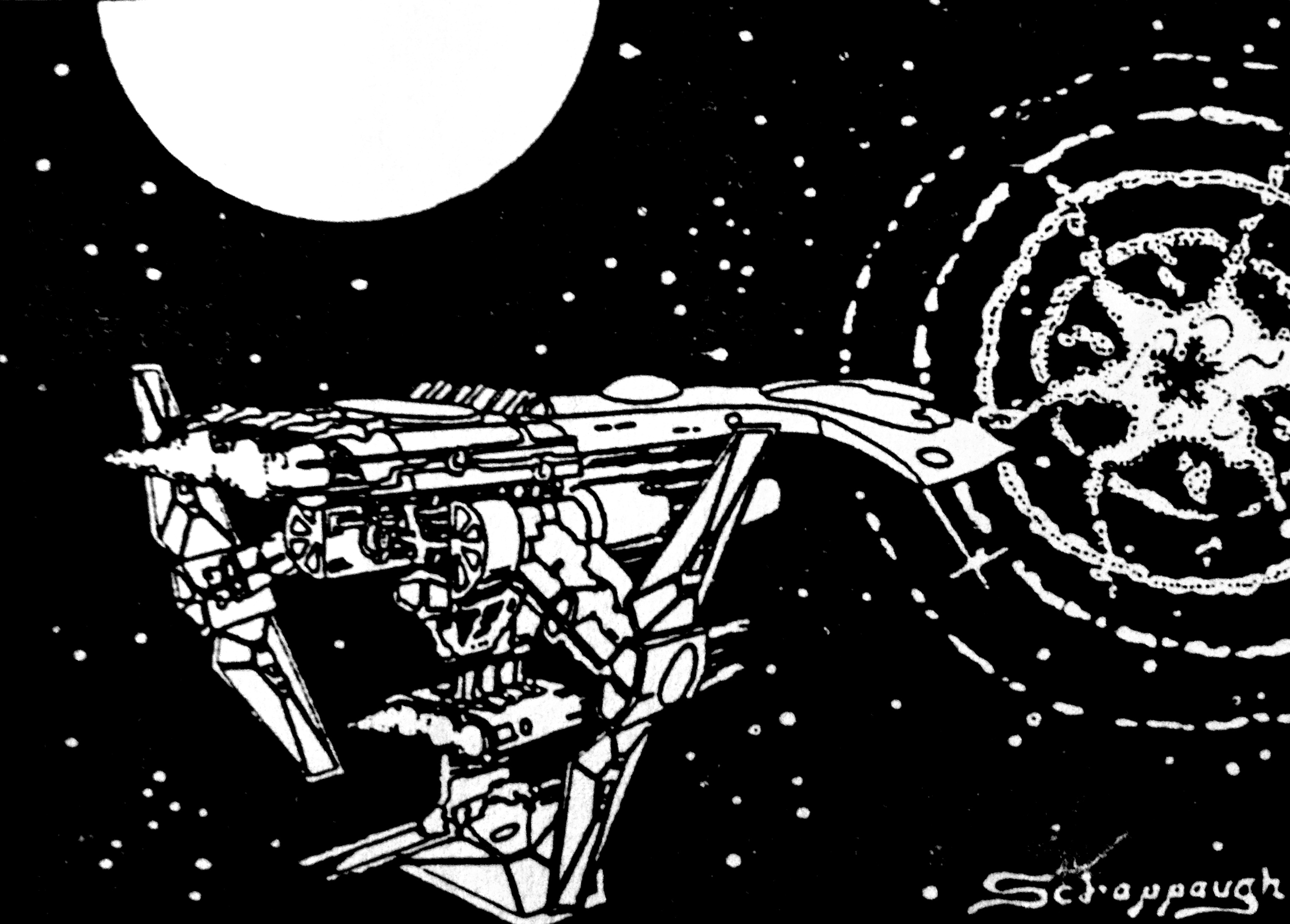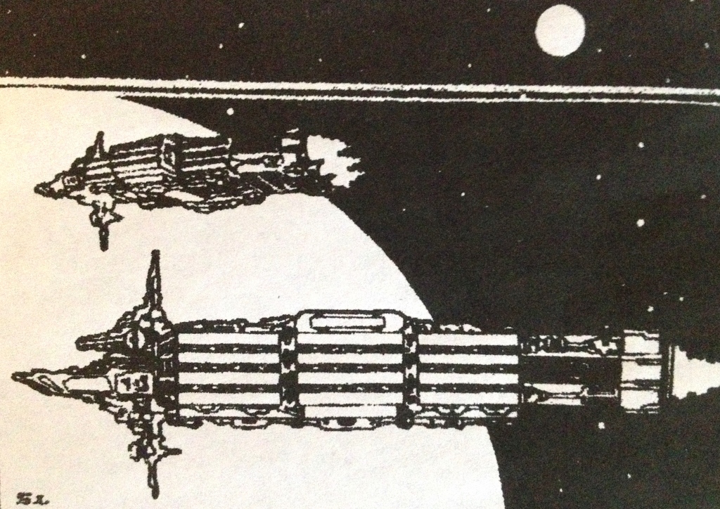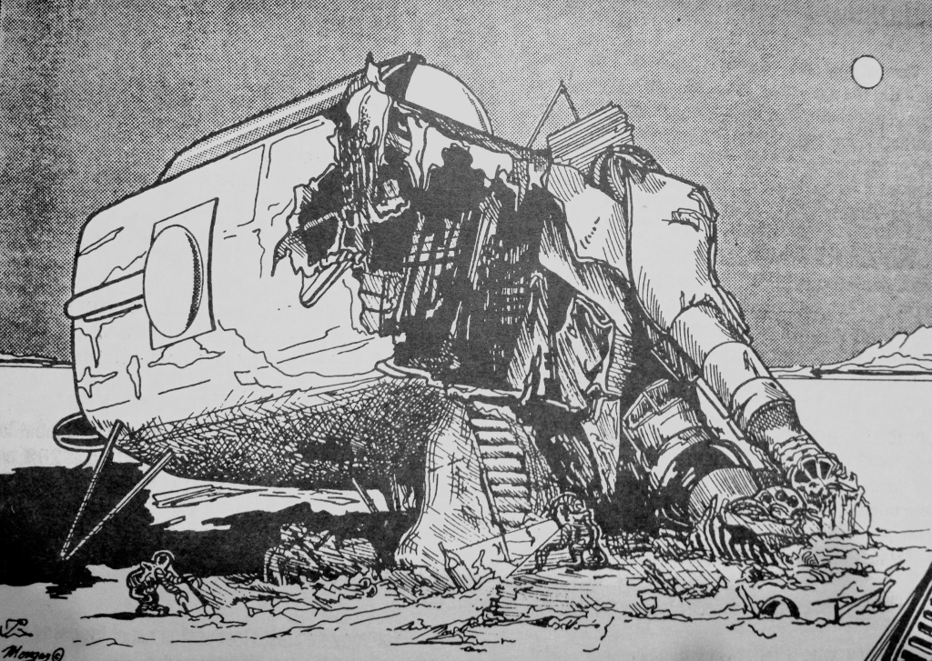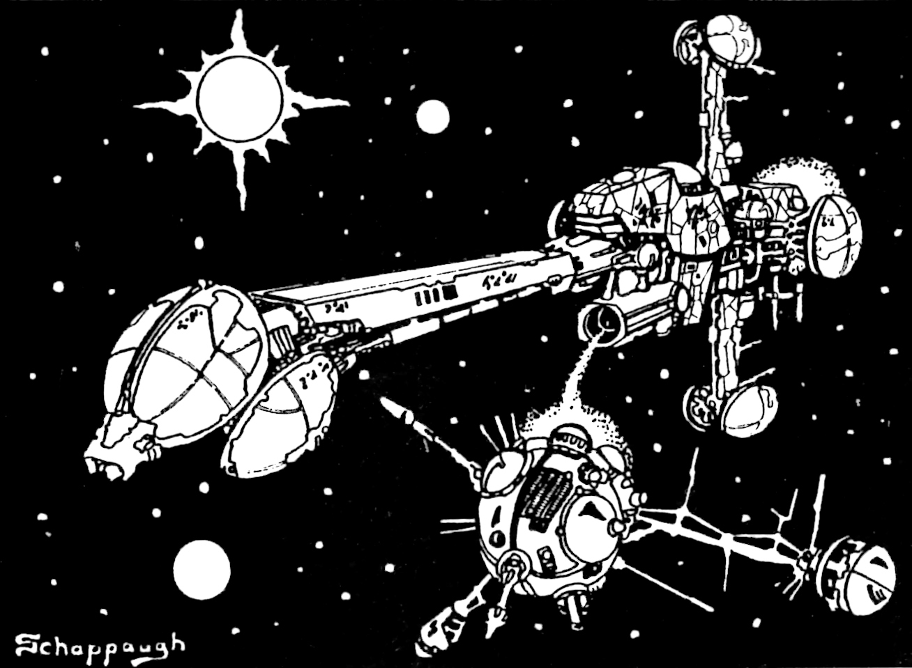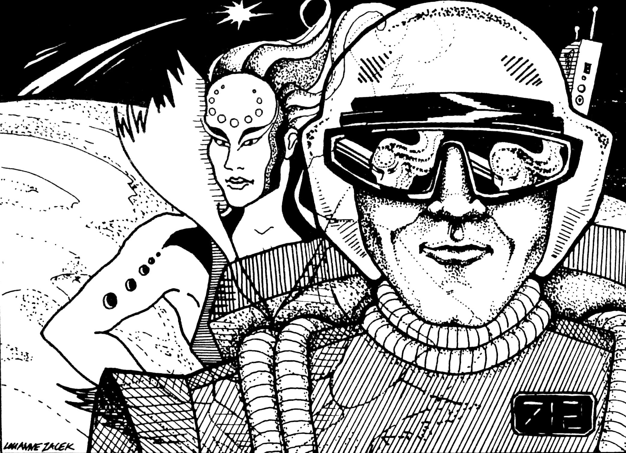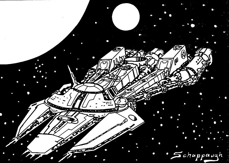 Most of the art pieces in the original game were pen and ink drawings that appeared in the rulebook or in tech level increase sheets distributed to players as part of the game play. Some of the art pieces were also used in magazine ads. Roger Buchholz, Tony Schappaugh, Jim Kuzze and David Snodgrass were the main contributing artists.