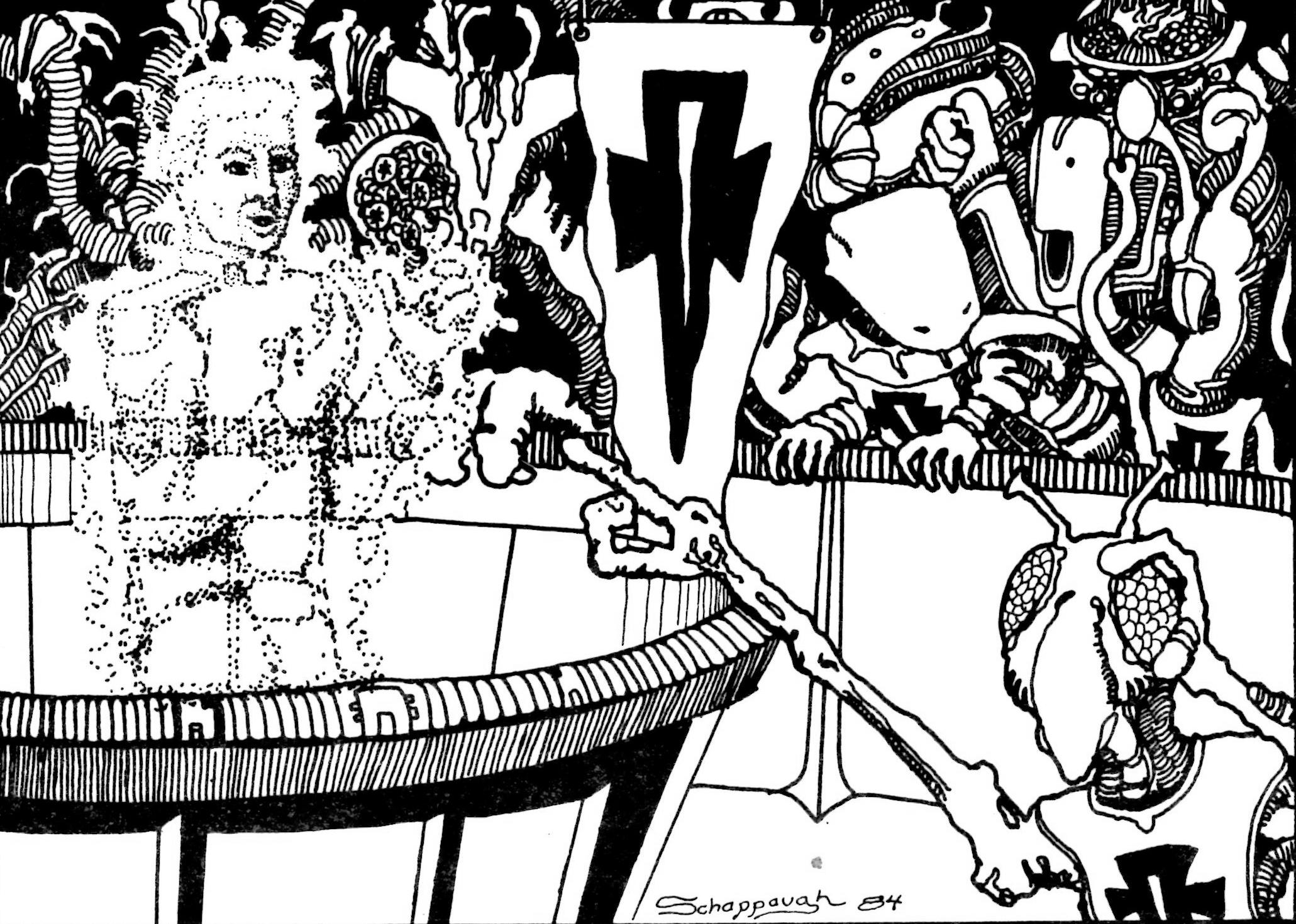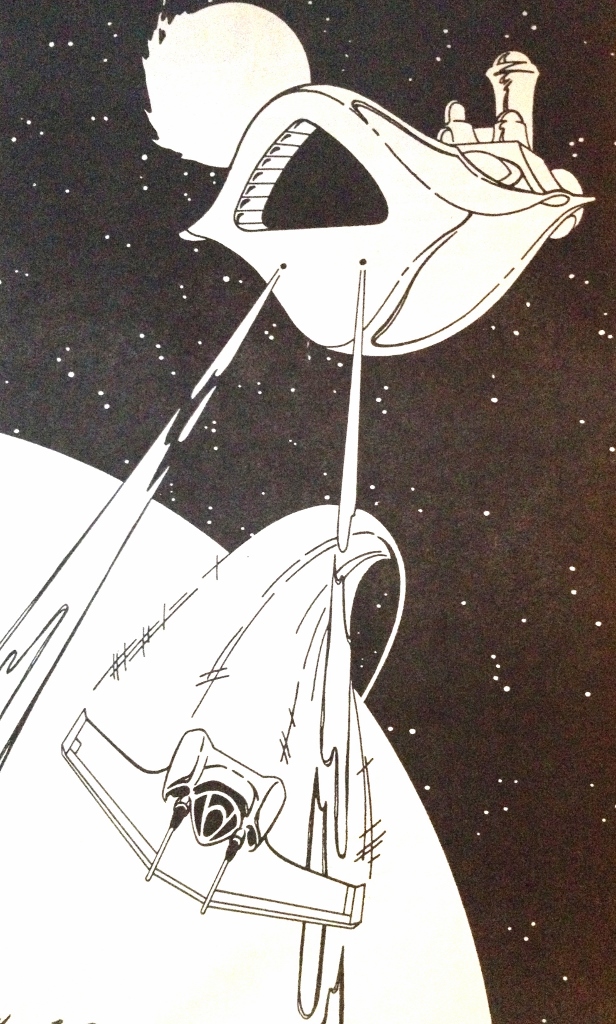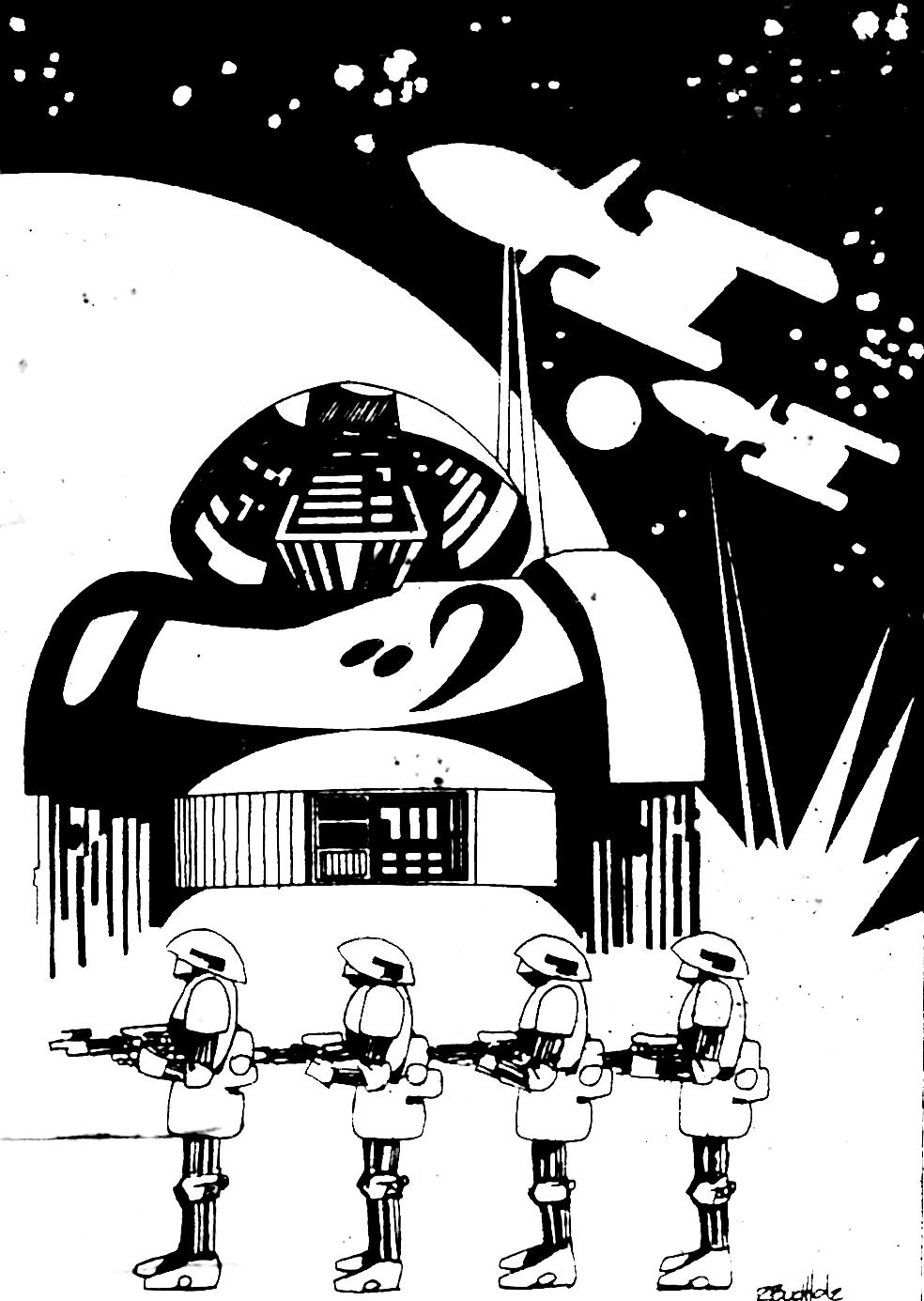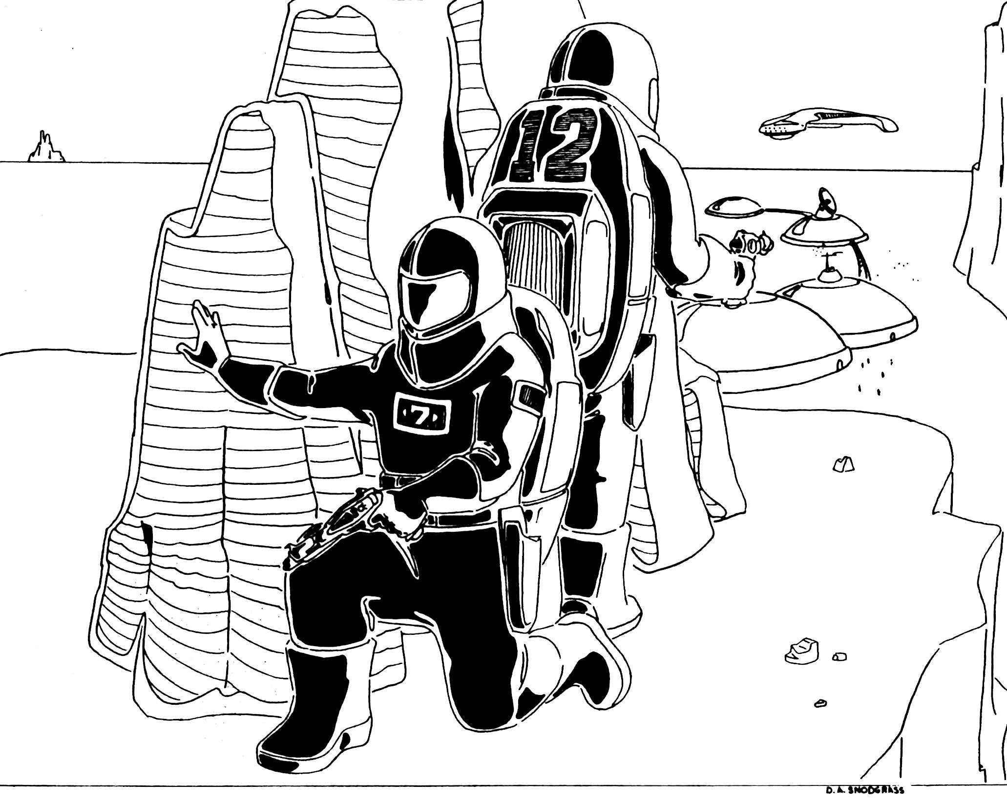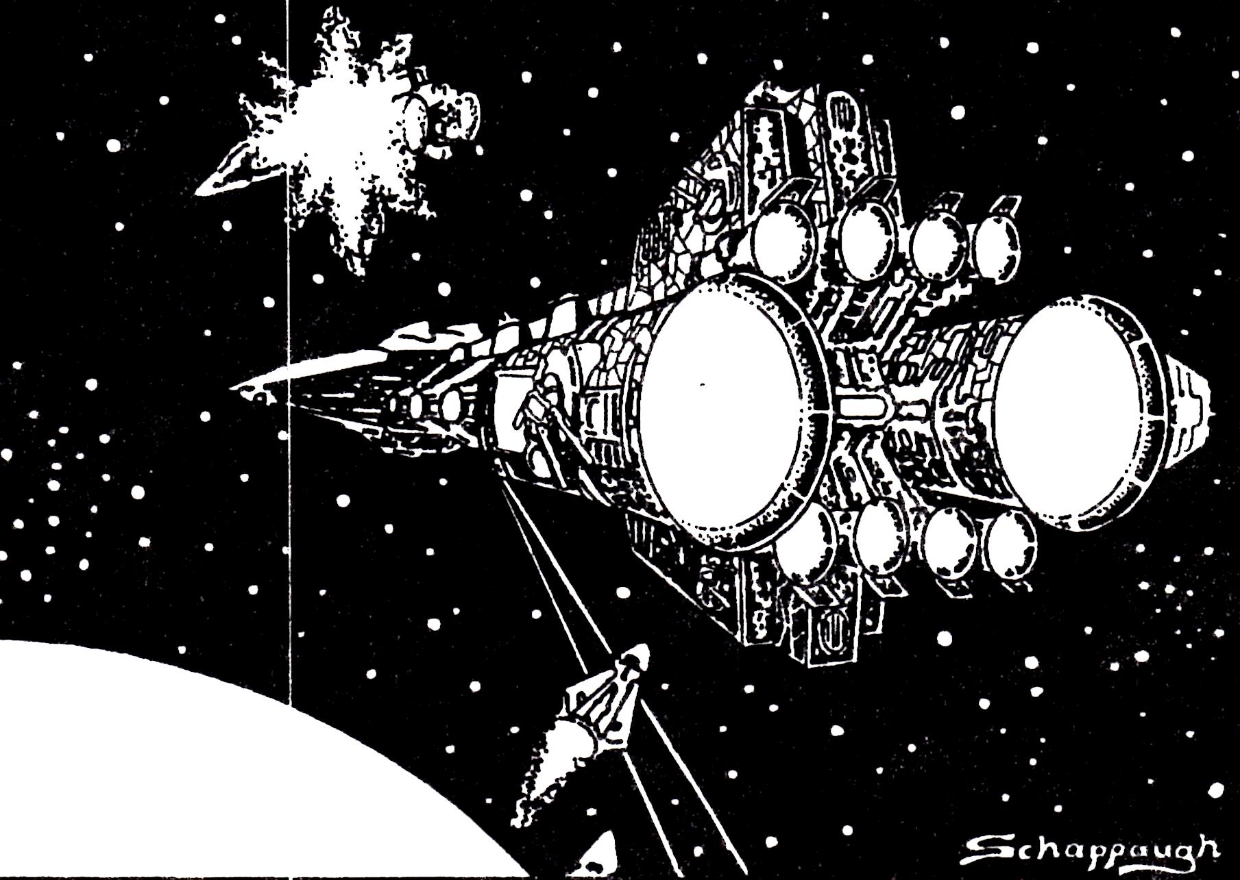 Most of the art pieces in the original game were pen and ink drawings that appeared in the rulebook or in tech level increase sheets distributed to players as part of the game play. Some of the art pieces were also used in magazine ads. Roger Buchholz, Tony Schappaugh, Jim Kuzze and David Snodgrass were the main contributing artists.